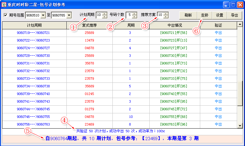 | 该功能主要方便用于实战,只需要根据历史中出的周期及走势来判断是否采用智能推荐来进行包号,在计划内进行投注应用。 | |